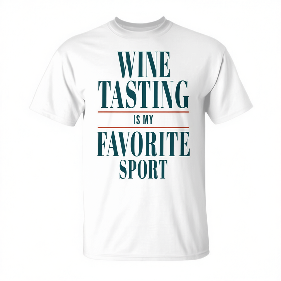 T-shirt da uomo e donna per adulti con scritta “Il degustazione del vino è il mio sport preferito”, bianca, a maniche corte, girocollo