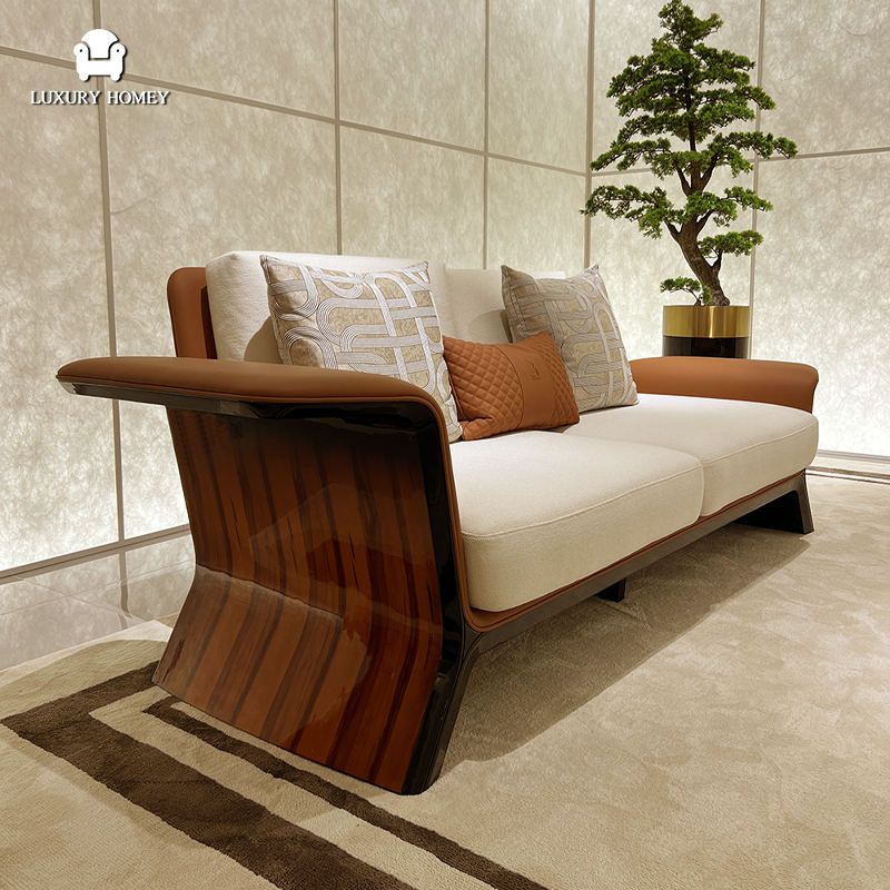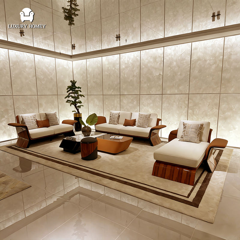 Divani Sezionali di Lusso in Legno Massello con Braccioli a Ala, in Vera Pelle, Personalizzabili per Soggiorno e Hotel di Lusso