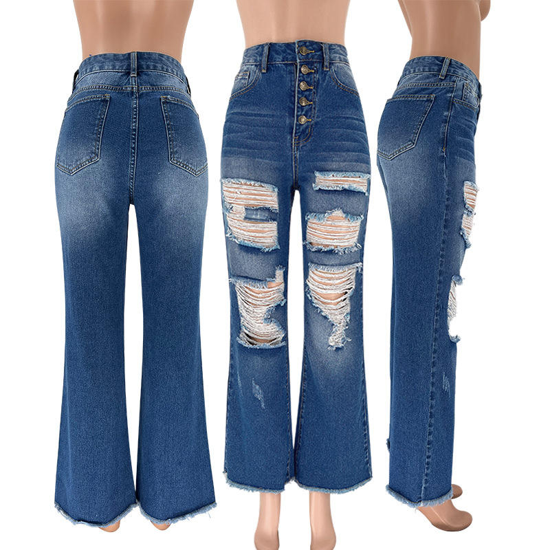 Nome articolo:Pantaloni di jeans blu da donna strappati