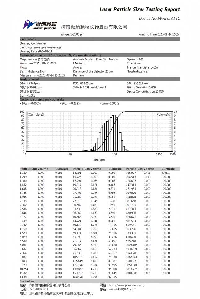 Standard:ISO13320-1:1999, GB/T19077.1-2008, Q/0100JWN001-2024