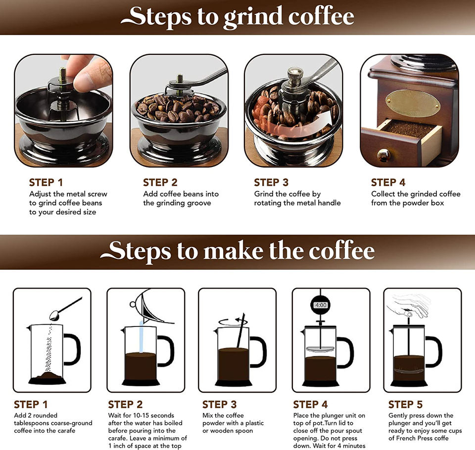 Set Regalo Macinacaffè 2025 con Pressa in Vetro per Caffè Fresco, Ideale per Matrimoni, Donne, Ragazze, Casalinghe, Uomini d'Affari