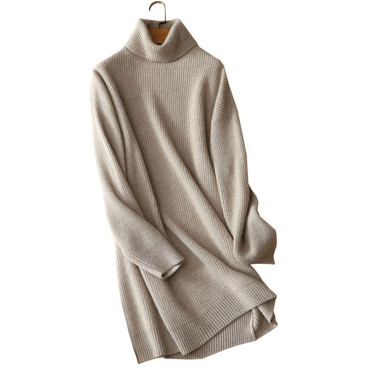 Abito maglione invernale 100% cashmere abito maglione da donna di lusso in puro cashmere con abito dolcevita a maniche lunghe