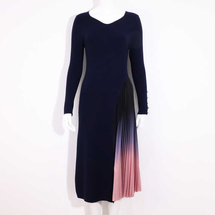 Winter 2023 Black Custom Pleated Long Sleeve Midi Long Elegant Casual Sweater Knitted Womens Dresses