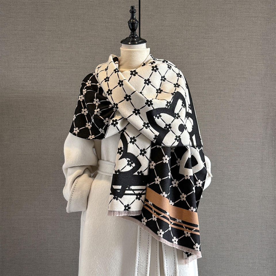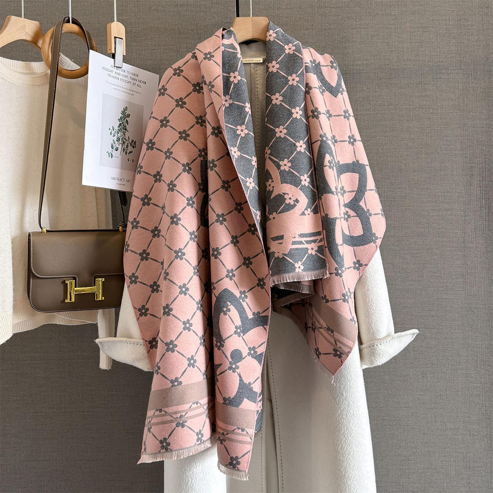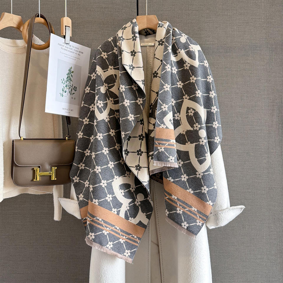 Sciarpa Inverno 2025 in Cachemire Stile Europeo e Americano, Stola Lunga per Ambienti Climatizzati, Scialle Esterno Double-Face Caldo