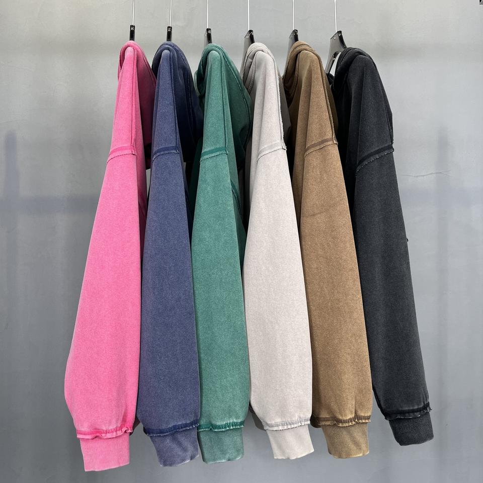 Felpa Vintage con cappuccio in spugna francese 450G felpa con cerniera
