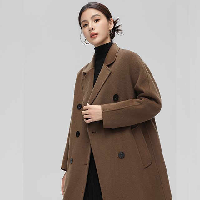 Winter Clothes Women's Wool Blazer Coat with Notched Lapel Double-breasted Design Formal Overcoat Women Coats