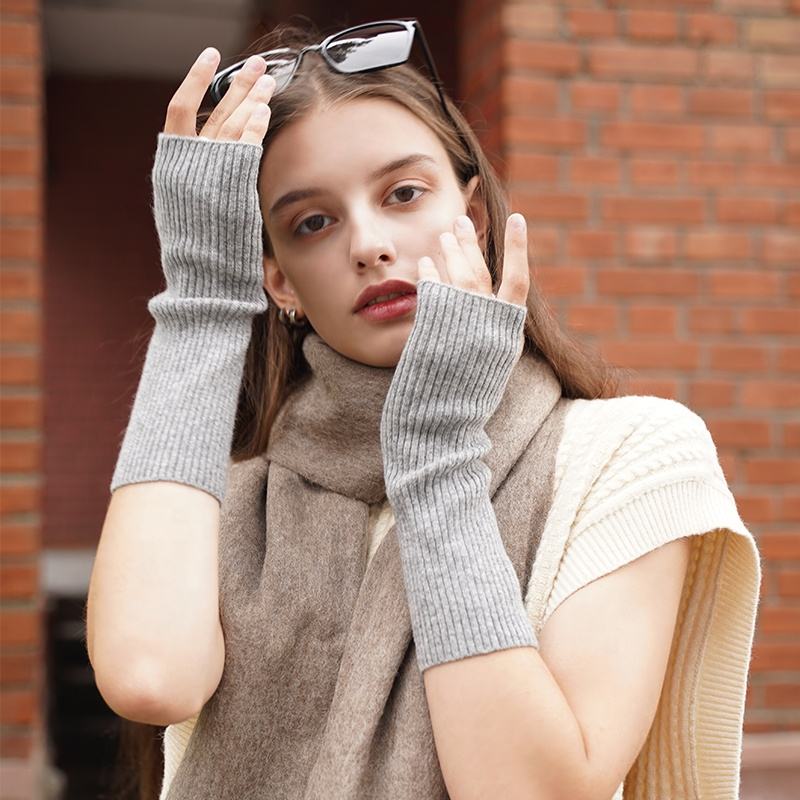 Guanti senza dita 100% cashmere a maglia a coste, uomo/donna, OEM, 9x25 cm/33 g, logo '100% CASHMERE', origine Mongolia Interna