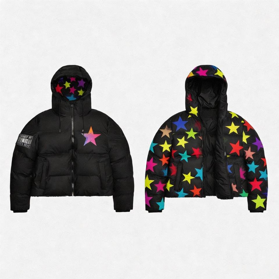 Giacca Puffer Invernale Personalizzata Unisex, Giacca Imbottita Spessa in Cotone con Cappuccio, Giacca Bomber Reversibile Stampata per Uomo e Donna