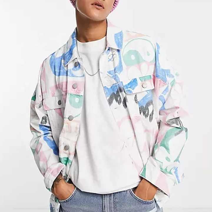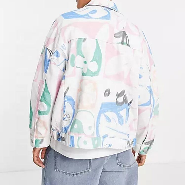 Giacca di Jeans invernale con stampa Graffiti in giacca di Jeans di Jeans personalizzati Hip-Hop oversize a manica lunga da uomo bianca