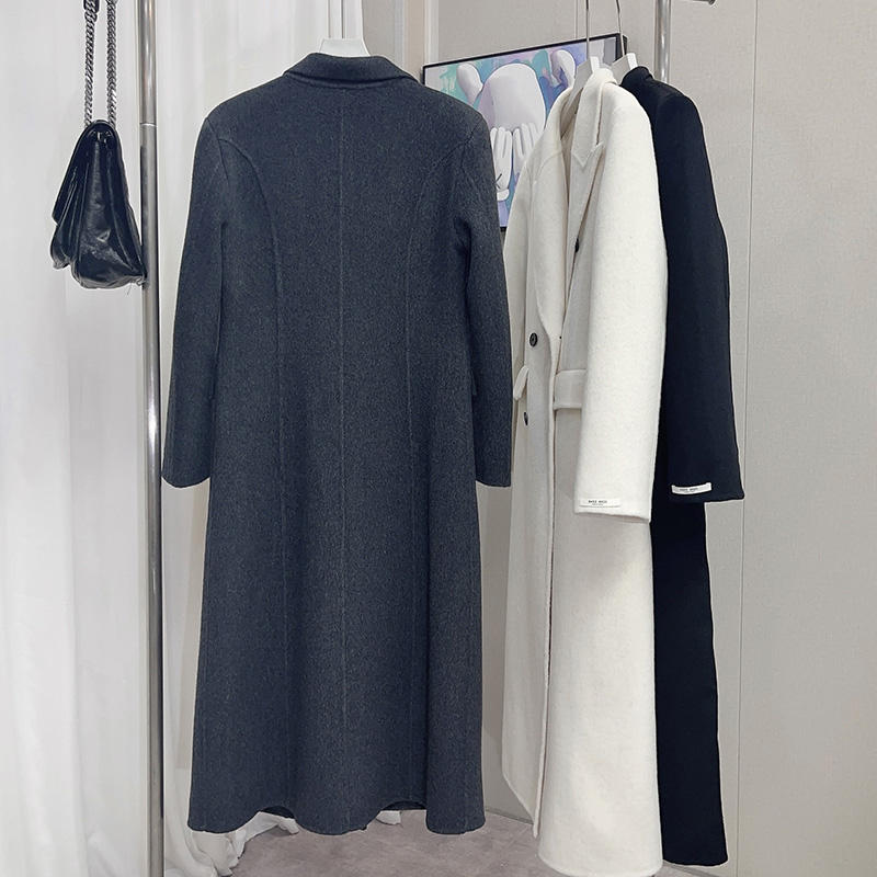 Cappotto da Donna Invernale Lungo Stile Trench a Doppio Petto in Lana ed Elegante Cashmere Double Face