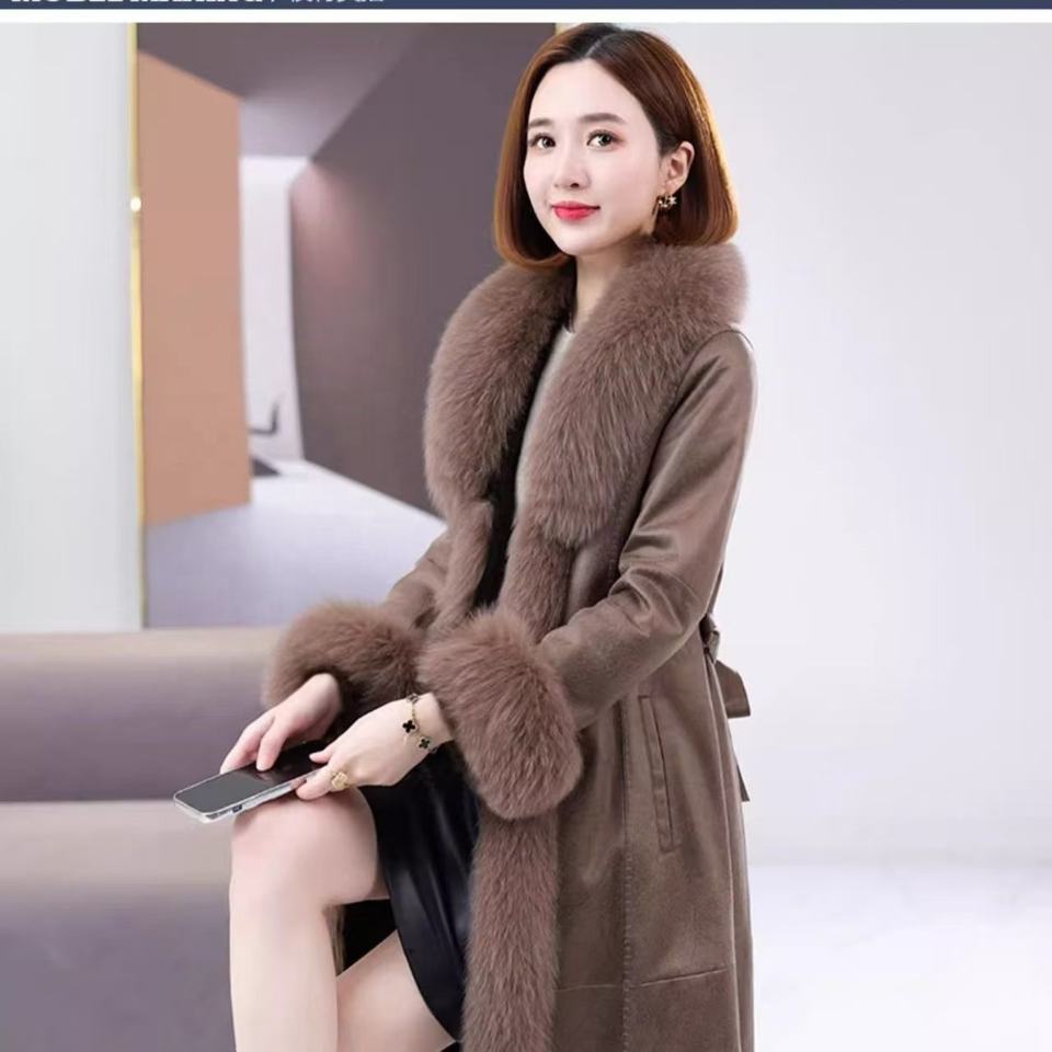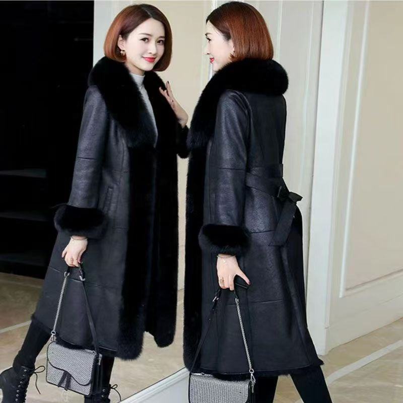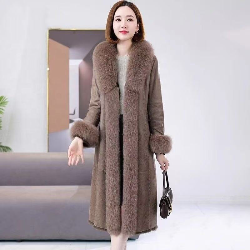 Moda invernale di fascia alta lungo collo di pelliccia di volpe pelliccia di coniglio e pelliccia di combinazione di pelle per le donne