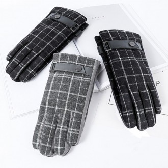 Winter Fashion Touch Gloves Suede Wool Check Suit Mittens