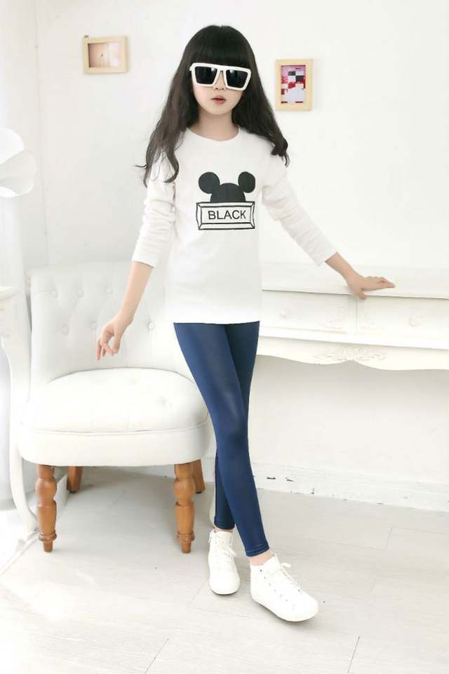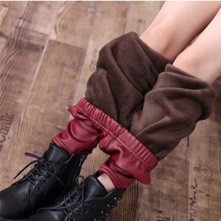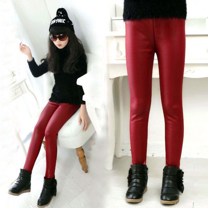 Winter Girls Leather Pants Thick Velvet PU Leather Children'S Leggings Children'S Pencil Pants Baby Warm Trousers Slim Trousers