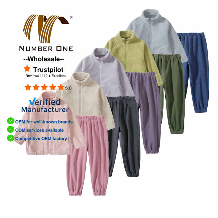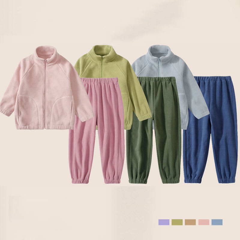 Winter Kids Fleece Clothing Set Unisex Warm Thickened Jacket Pants 2pcs Solid Color Zipper Outdoor Wear for Boys Girls Children