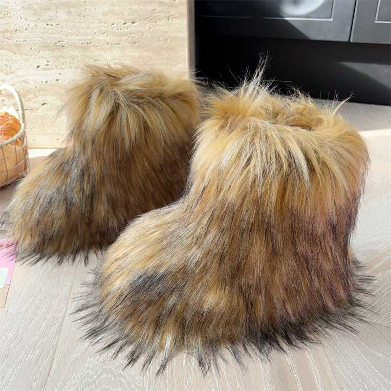 Winter Kids Warm Snow Boots Girl Fluffy Faux Fur Boots for Kids Children Furry Shoe Flat Non Slip Boots Luxury Fur Shoes