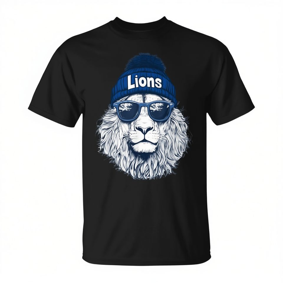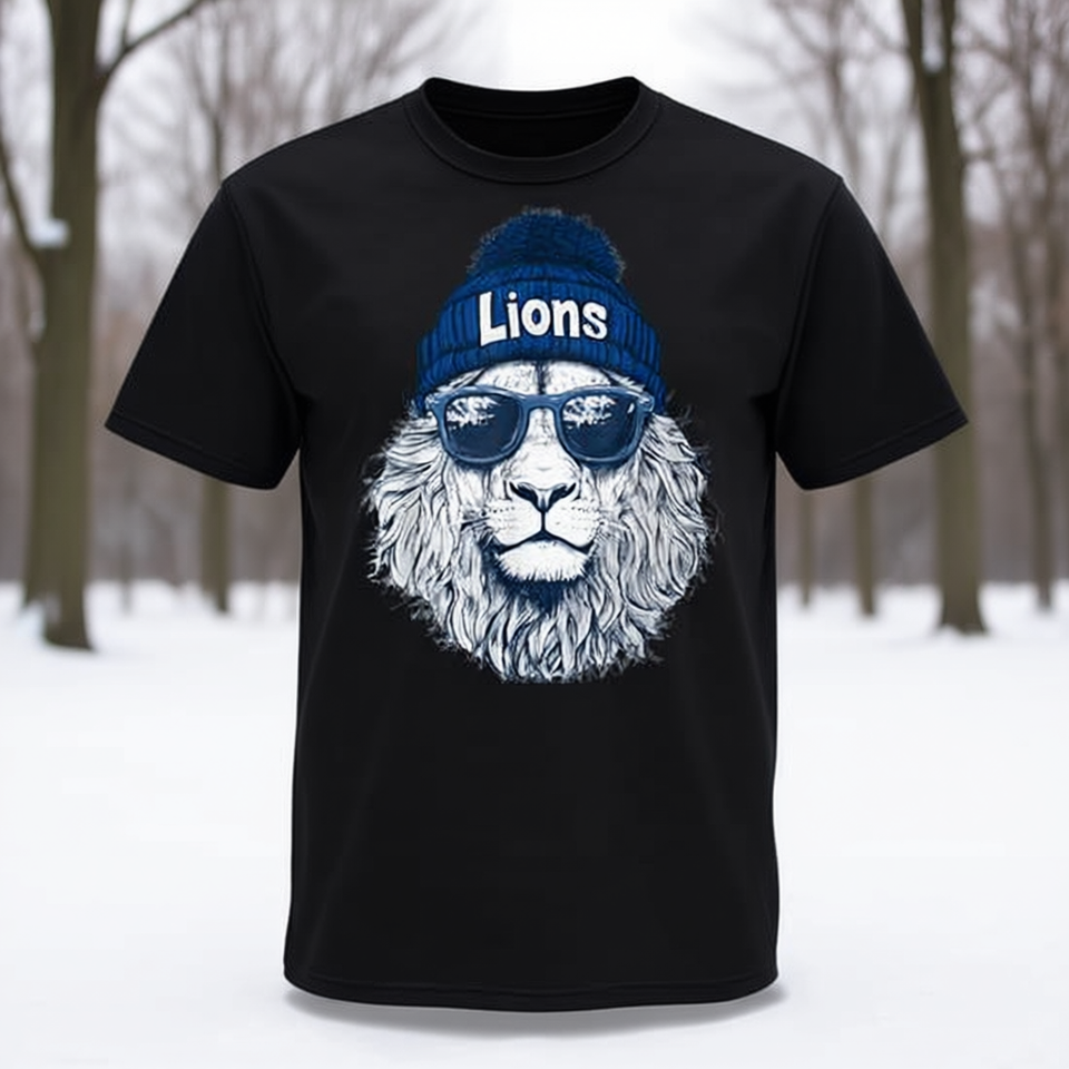 T-Shirt con Faccia di Leone Invernale e Occhiali da Sole per Amanti dei Leoni, Prodotto Promozionale
