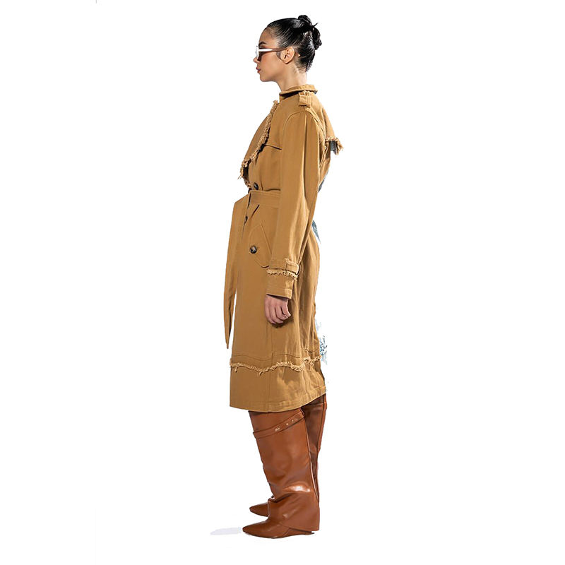 Invernale a maniche lunghe con risvolto doppio petto sfilacciato orlo mezzo acido lavaggio Denim con classico Trench cappotto al ginocchio da donna