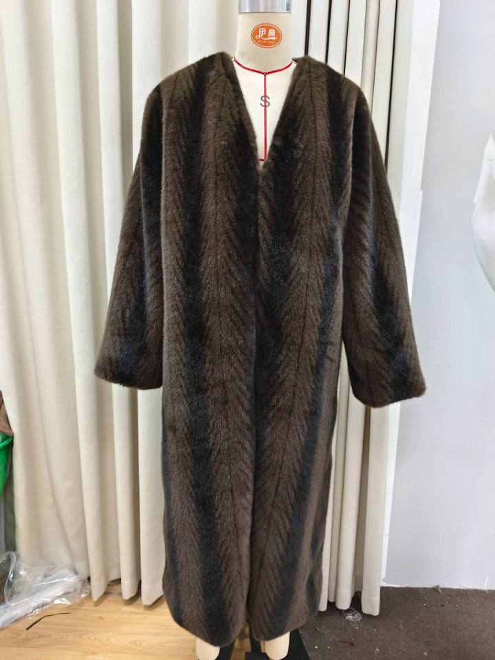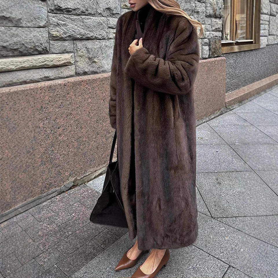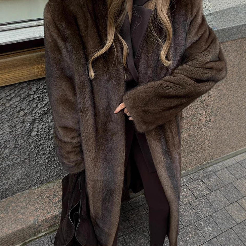 Winter Long Vintage Women V Neck Furry Overcoat 2025 Elegant Luxury Chic Thick Warm Soft Brown Fluffy Faux Mink Fur Coat