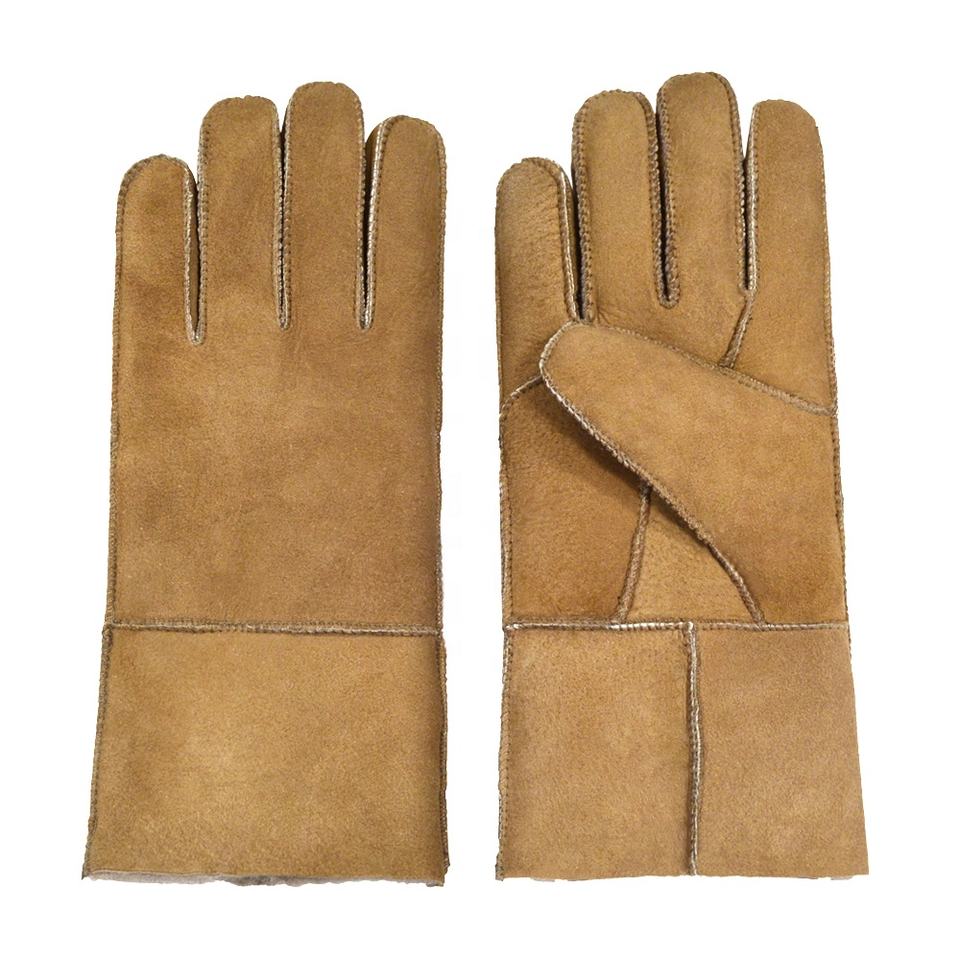 Winter Men Sheep Fur Gloves Full Finger Genuine Suede Sheepskin Leather Motorcycle Gloves Windproof Sheep Fur Lined Mittens