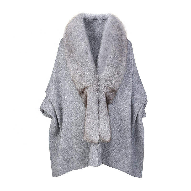 Cappotto Invernale Slim Fit con Bordo in Finta Pelliccia di Volpe, Stampa Vintage e Decorazioni in Pelle di Pecora, Poncho Imbottito in Cammello