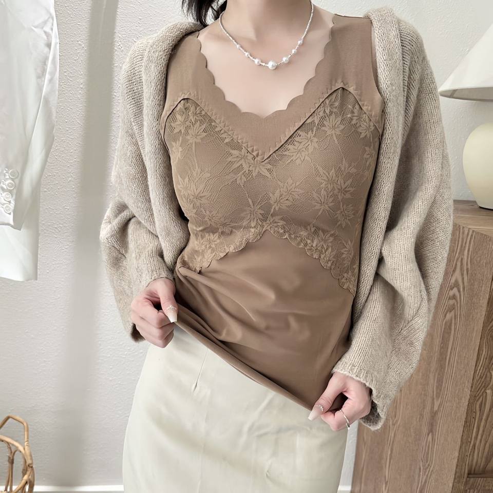 Canotta Termica Invernale Elasticizzata, Moda Taglie Forti, Top Caldo con Reggiseno Integrato, Intimo Termico Femminile