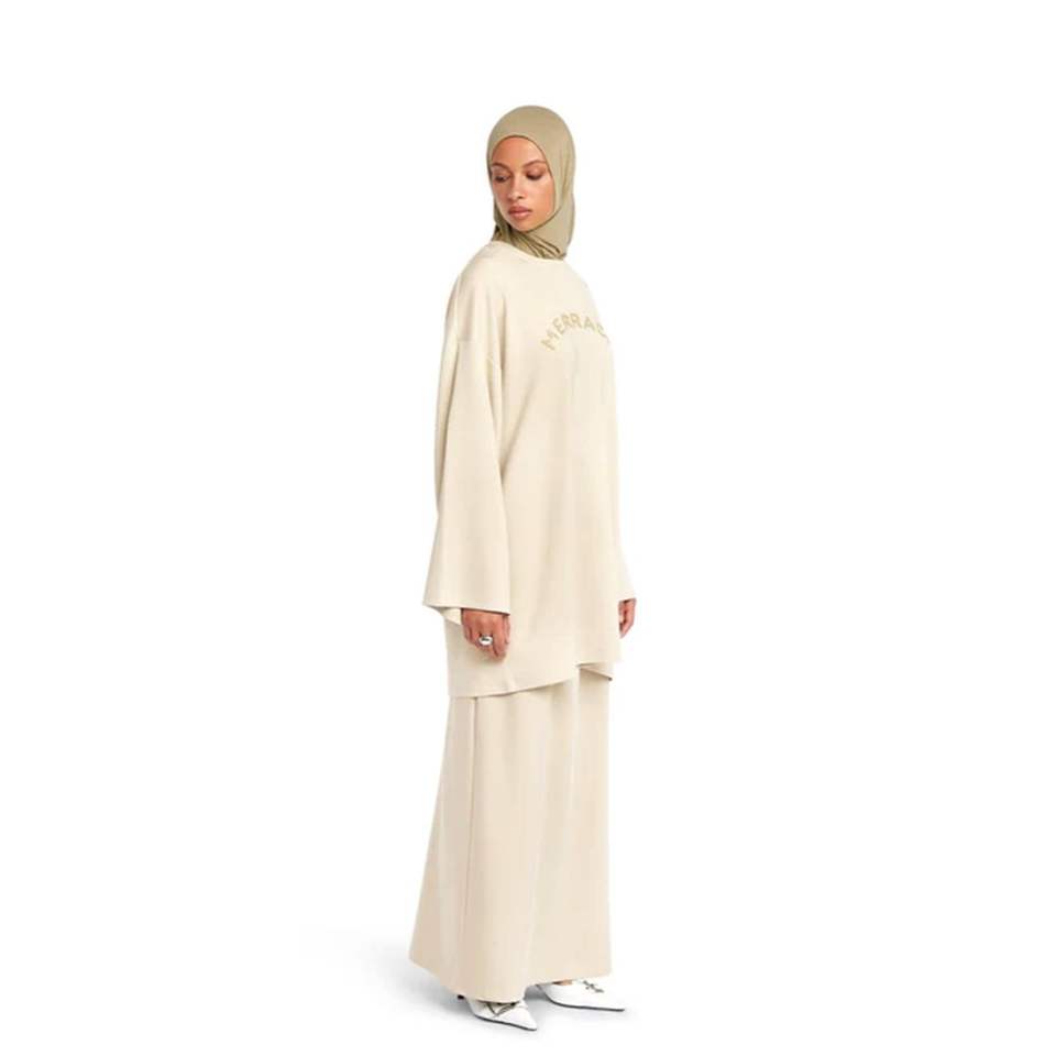 Winter Sweater Knit Cotton Daily Casual Islam Modest Sets Tops Spring Wide Sleeve Beige Modest Blouses & Shirts