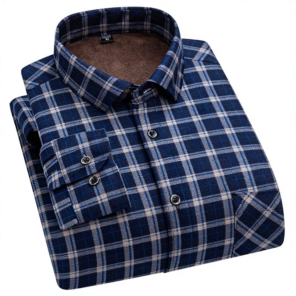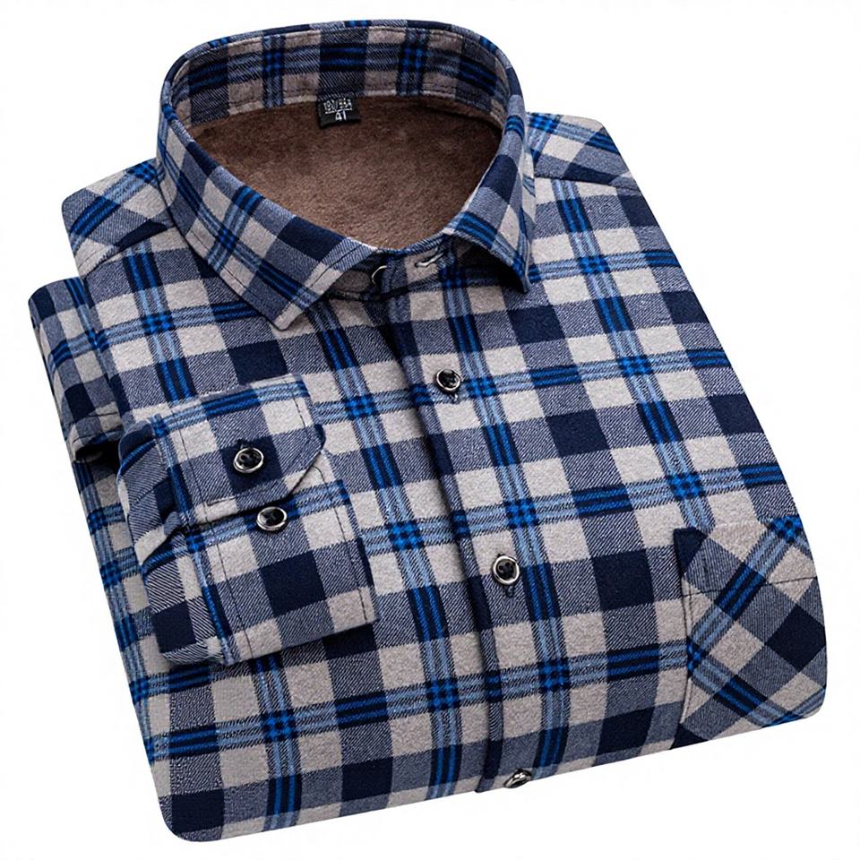 Camicia invernale da uomo in velluto a doppia faccia foderata in pile e calda camicia da uomo di moda