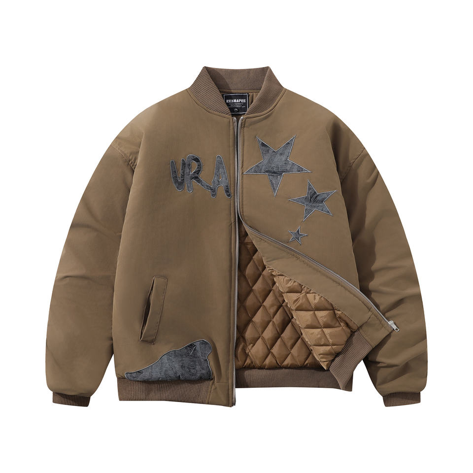 Winter Vintage Thick Varsity Outwear Jacket 100% Polyester Canvas Shell Windproof Breathable Unisex Coat with 3D Embroidery