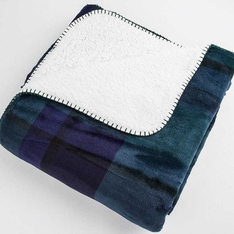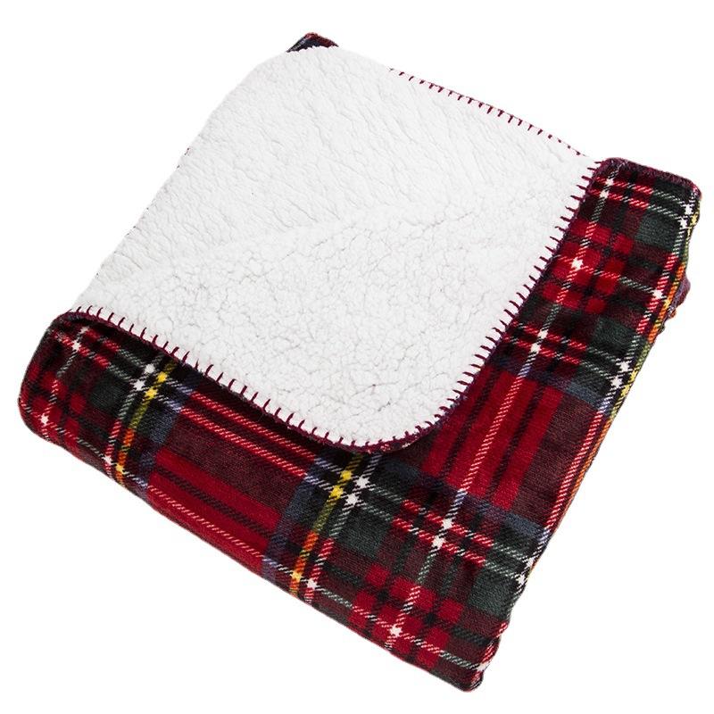 Winter Warm Comfy 60" X 80" Bedding Flannel Sherpa Blanket Custom Plaid and Sherpa Double Layers Throw Blanket