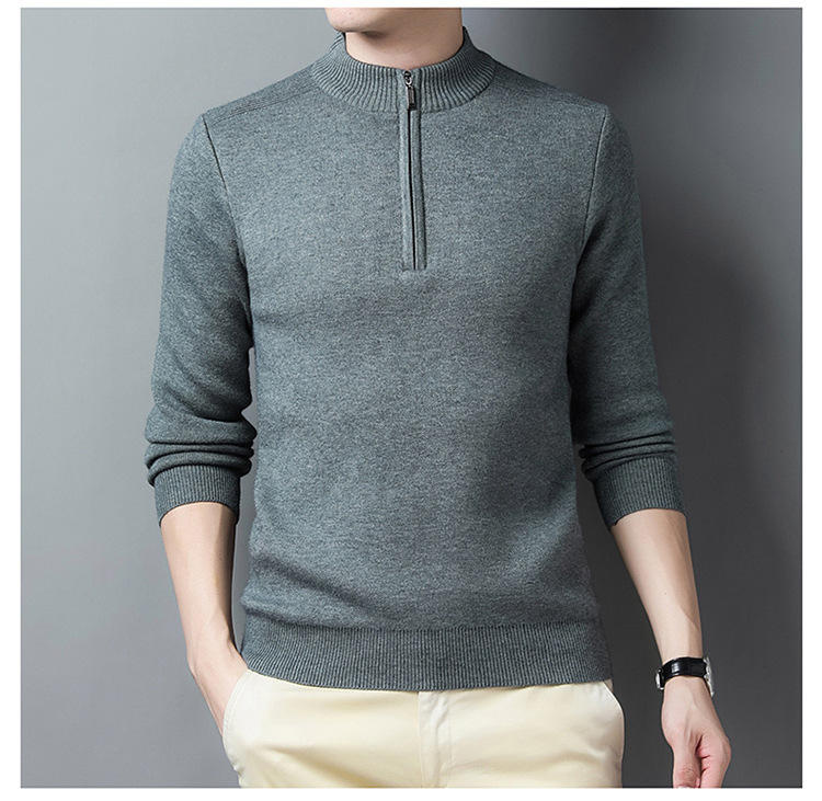 Maglione Invernale Caldo e Spesso con Mezza Zip per Uomo, Collo Alto, Foderato in Pile, Casual, Manica Lunga