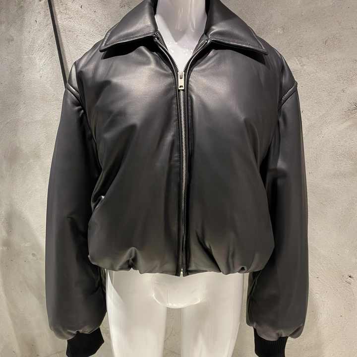 Winter Women Black Sheepskin Leather Down Jacket Leather Bomber Jacket Women Leather Puffer Jacket