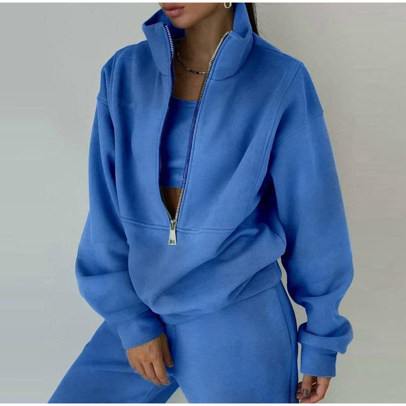 Completo Invernale da Donna Casual Tinta Unita, Felpa con Cerniera e Collo Alto e Pantaloni, Caldo in Tela, Due Pezzi, Taglia 3XL