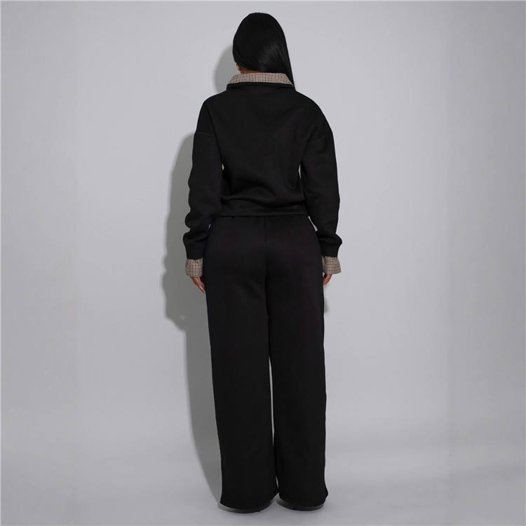 Winter Women's Color Clashing Tracksuit Oversize Casual Two Piece Set Women Classic Lapel Sports Tops Trouser Suits for Women