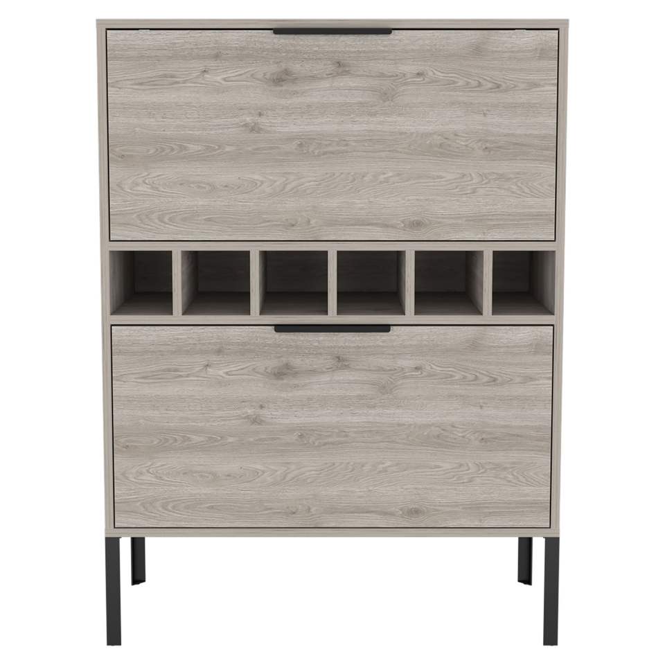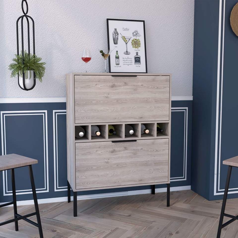Mobile bar rettangolare Winthrop grigio chiaro con 6 bottiglie