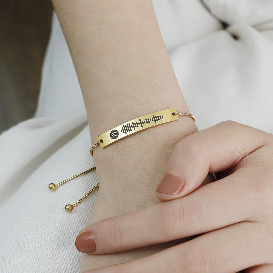 Winwinwin Drop Shipping Spotify braccialetto con Note musicali incise con codice in acciaio inossidabile Premium