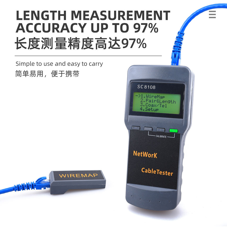 Tester di Cavi SC-8108 con Telecomando, Solo per Cavi in Fibra, CAT5, RJ45, LAN e Telefono