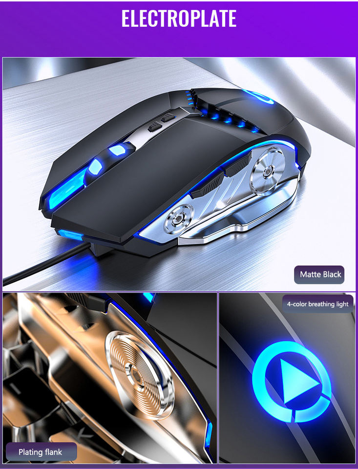 Wired Gaming Mouse 3200DPI Respirazione LED E-Sport Meccanico Muto Muto Del Mouse Gamer Mouse Ottico Sens per il Computer Portatile del Computer