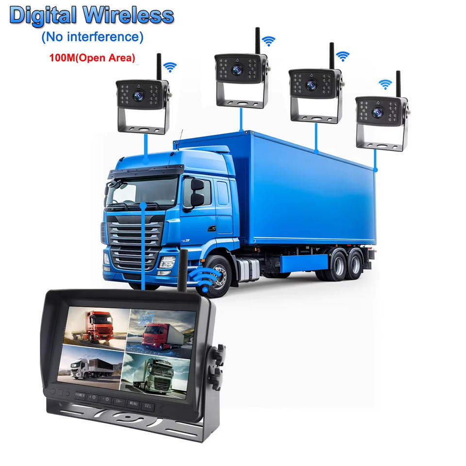 Kit Sistema di Monitoraggio con Videocamera Wireless per Sicurezza Auto, Telecamera di Retromarcia, Schermo da 7 Pollici a 4 Canali, MDVR per Autobus, Camion, Camper, Rimorchio, Telecamera di Backup Wireless