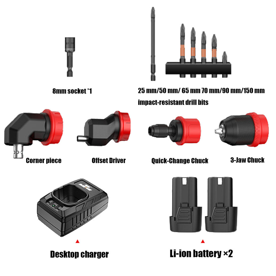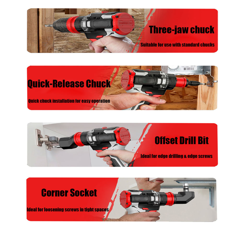 Serie di Trapani Senza Fili con Accessori, Motore Brushless Multiuso, Velocità Variabile, Kit Utensili Elettrici, Coppia Massima 55Nm