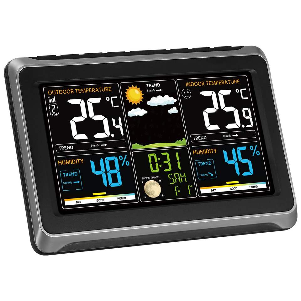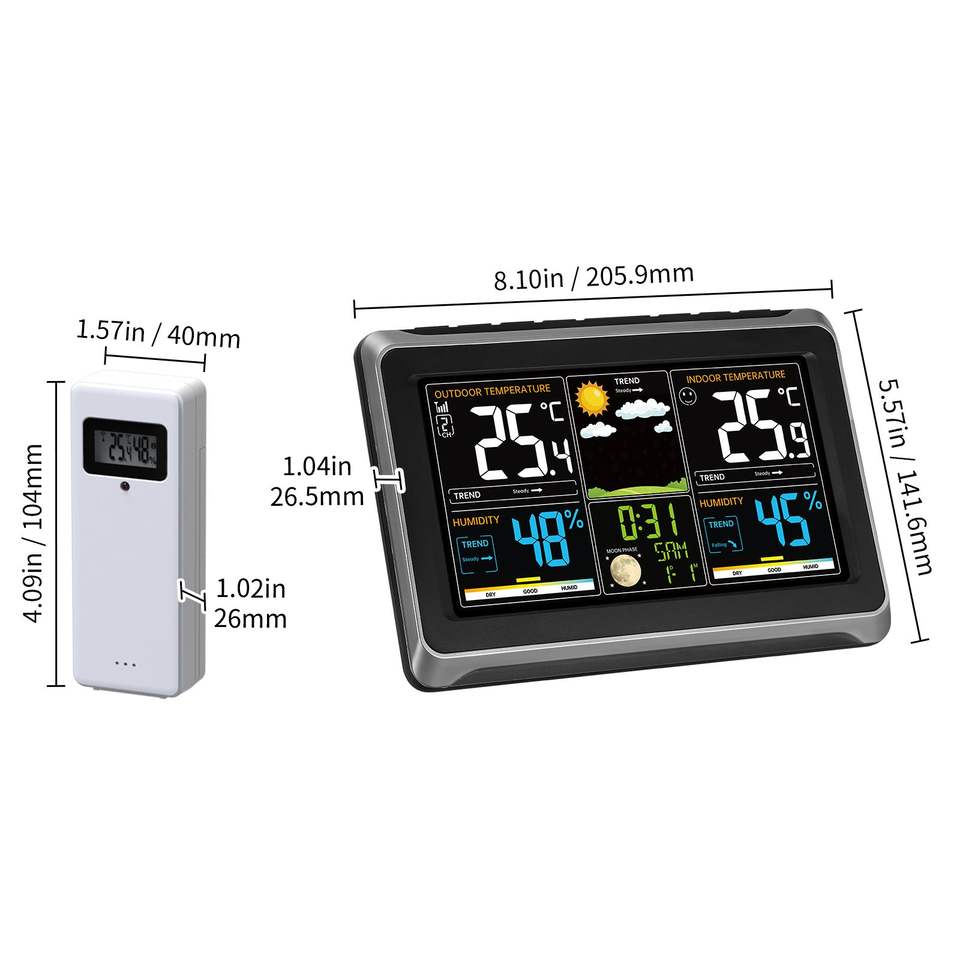 Stazione Meteo Digitale Wireless per Casa con Display a Colori da 7.5 Pollici, Sensore Interno/Esterno, Orologio Atomico Regolabile, Termometri Domestici