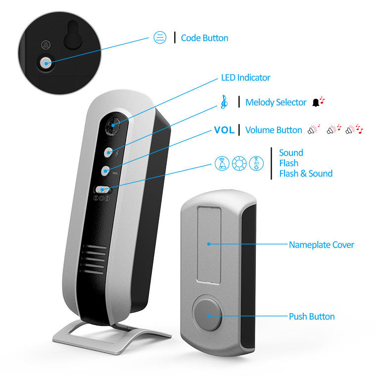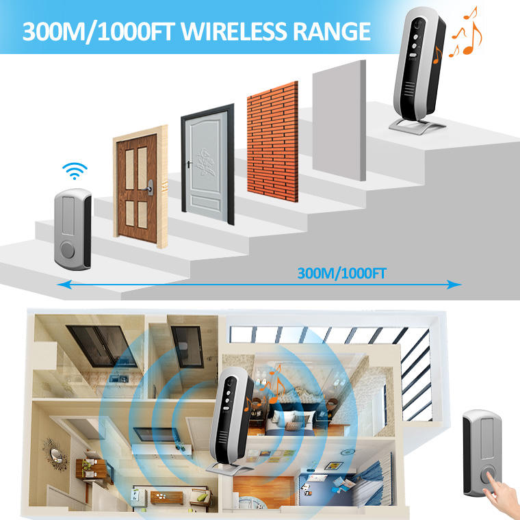 Campanello Wireless Impermeabile con Portata di 300M, Campanello Intelligente a Batteria con 1 Pulsante e 1/2/3 Ricevitori