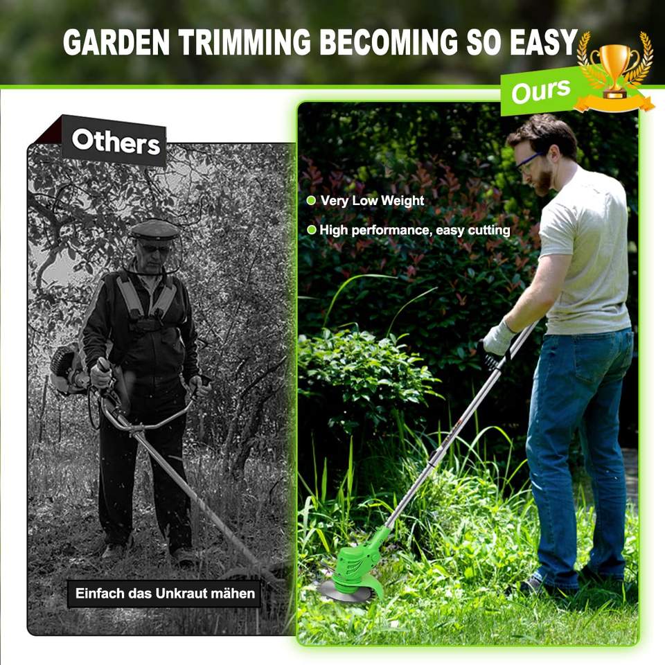 Wireless Grass Cutter Brushed Motor 24V Lithium Battery Stainless Steel Blade 145mm Cutting Width Anti-Vibration Handle