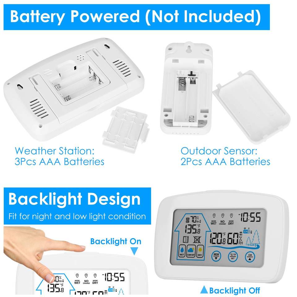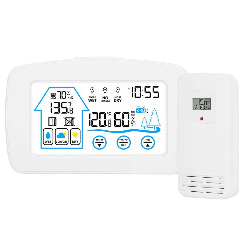 Stazione Meteo Wireless per Interni/Esterni con Portata di 60 Metri, Orologio, Termometro e Sensore per Monitoraggio Temperatura e Qualità dell'Aria