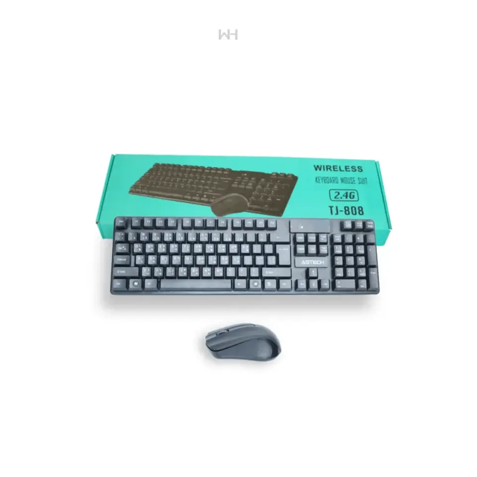 Combo Tastiera e Mouse Wireless Standard per PC, Materiale ABS Nero, Connettività USB, 104 Tasti, TJ-808, Richiede 2 Batterie AA