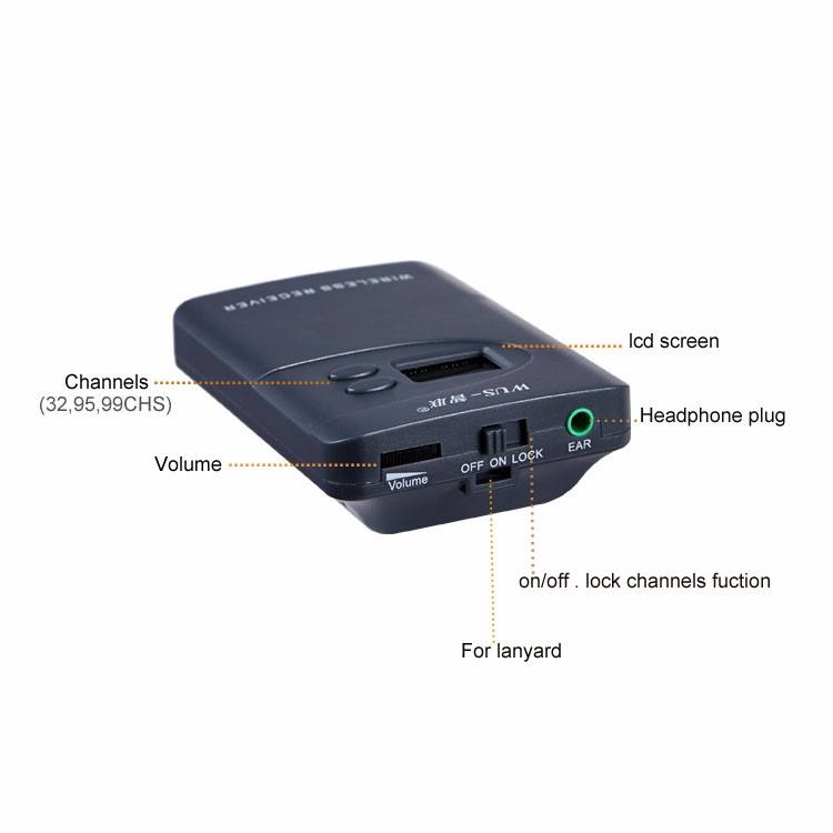 50receivers+2transmitters+2microphones+50earphones+50lanyards+1carrying case.