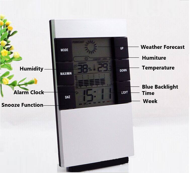 Wireless Weather Forecast Station Indoor Outdoor Thermometer Digital Hygrometer With Sensor Alarm Clock