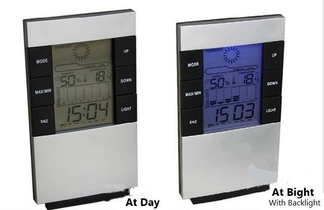 Weather Forecast, Temperature, Humidity, Alarm, Time, Snooze function