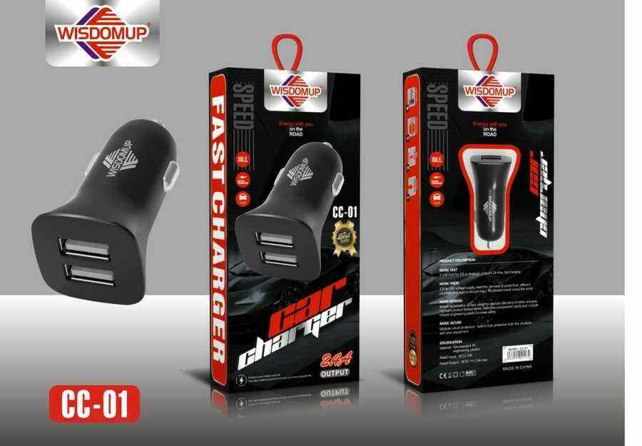 Caricabatterie per Auto Wisdomup CC-01 2.4A con Doppia Porta USB 12-24V Ricarica Rapida per Uso Veicolare