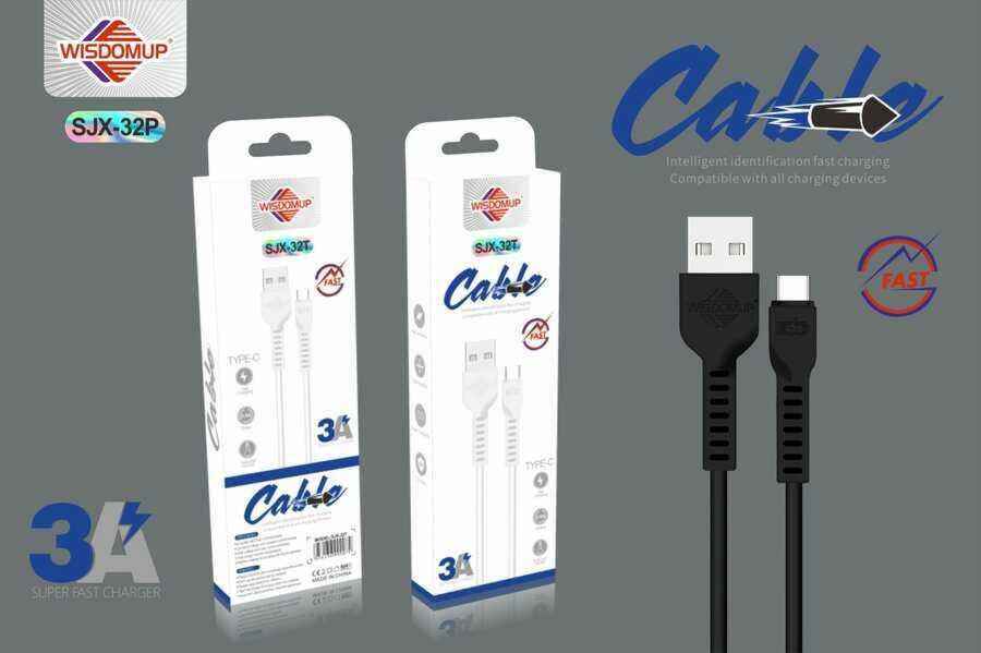 Cavo dati Wisdomup USB A a USB C 3A a ricarica rapida, 3 metri, bianco, per ricarica e trasferimento dati