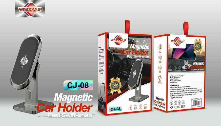 Supporto Magnetico per Auto Wisdomup CJ-08, Montaggio su Cruscotto, in Plastica e Metallo, Aggancio Rapido